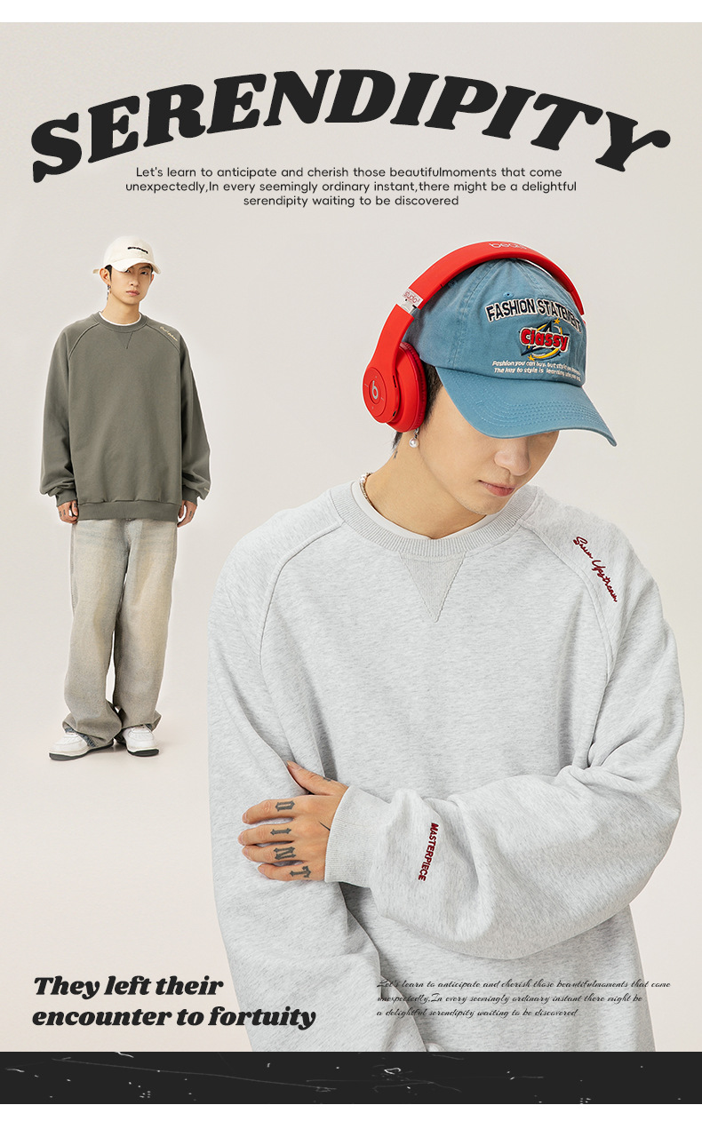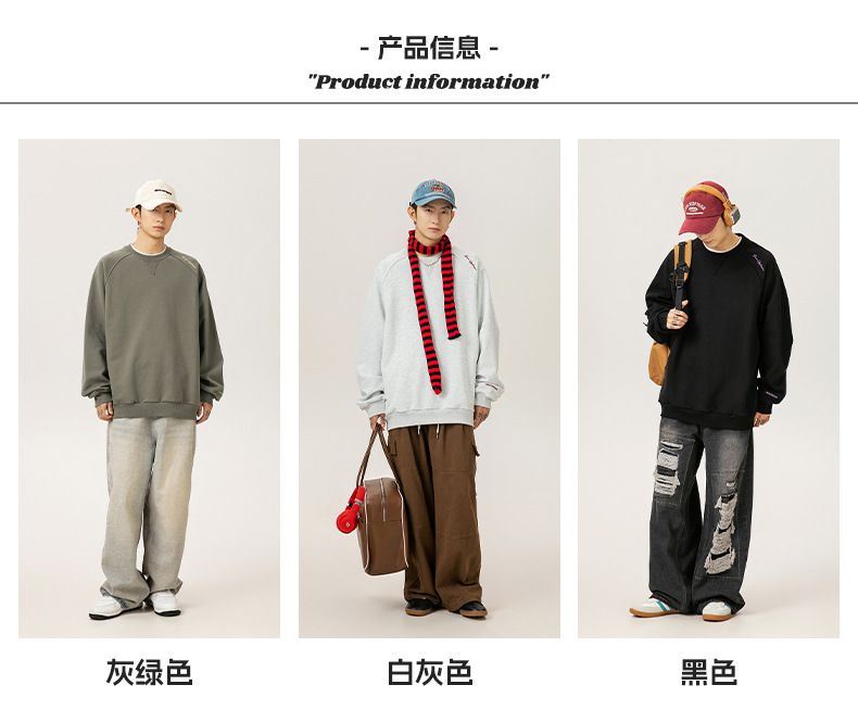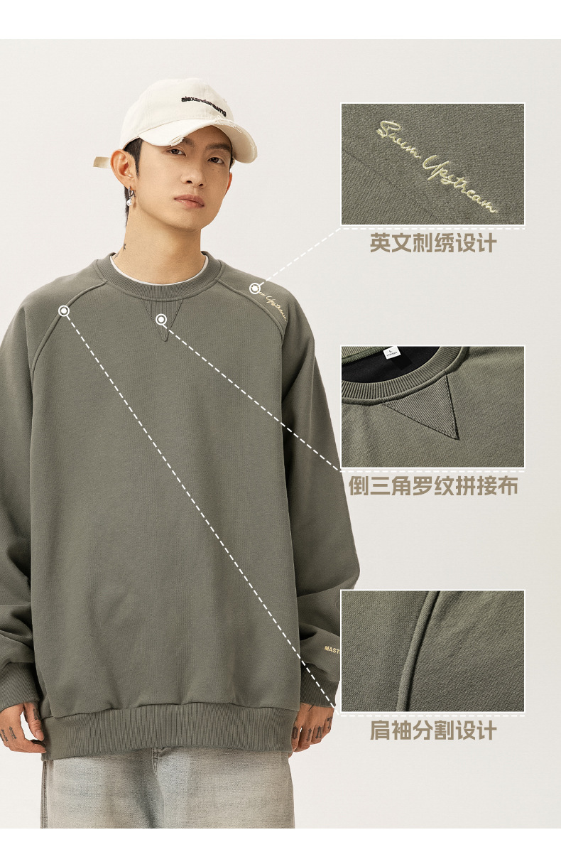 結構拼接400G重磅圓領衛衣男美式字母刺繡插肩袖帽衫復古寬松外套