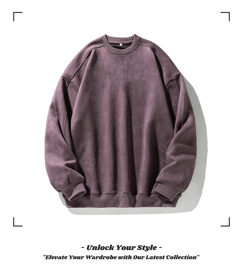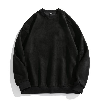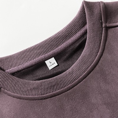 400g麂皮絨純色衛衣男春季新款美式復古上衣情侶套頭外套可供二開