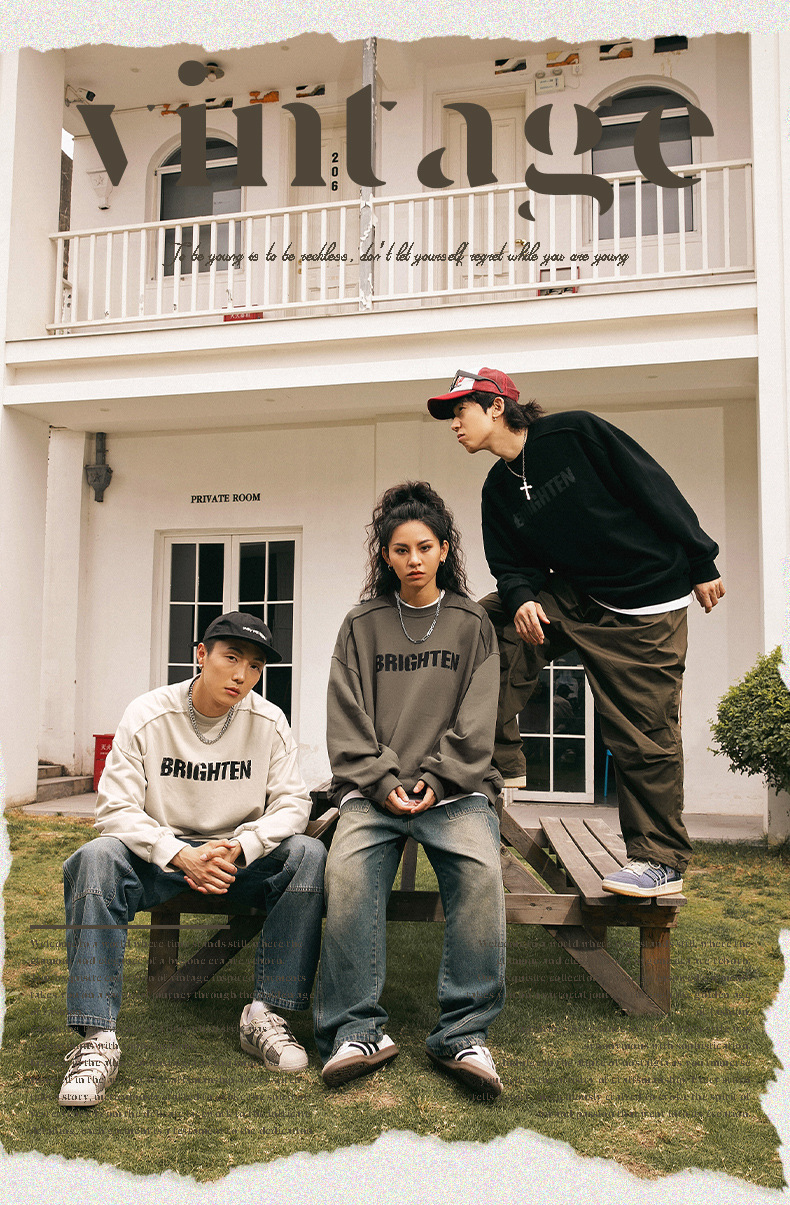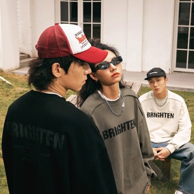 破碎字母印花美式衛衣男春季款寬松復古破壞毛邊設計情侶潮牌外套
