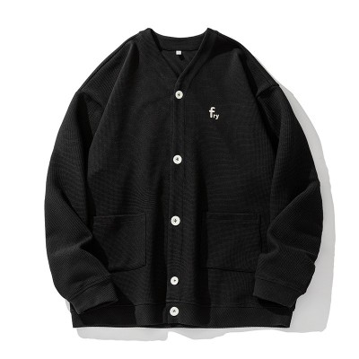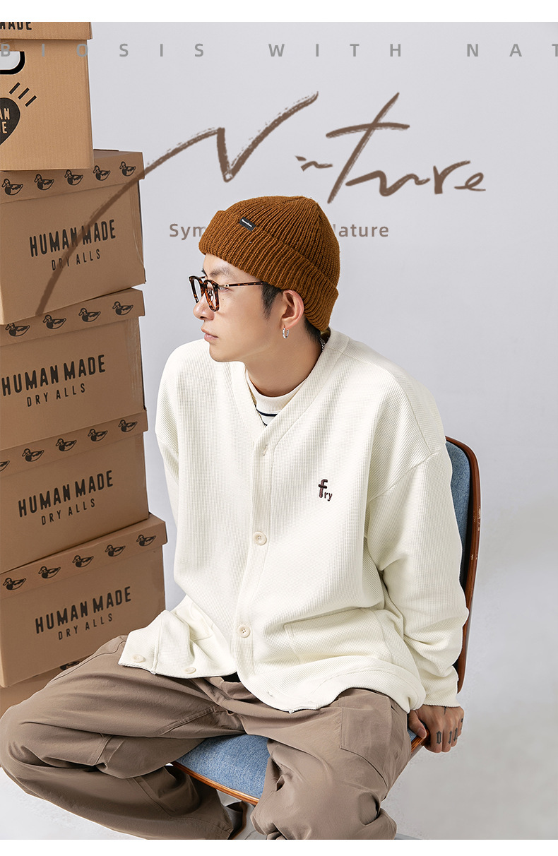 日系華夫格開衫衛(wèi)衣男2025春季新款寬松情侶中性刺繡夾克外套q
