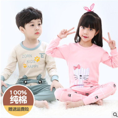 兒童睡衣秋冬純棉保暖女童男孩100%全棉家居服寶寶棉毛衫內衣套裝