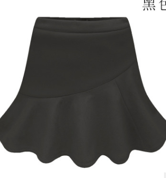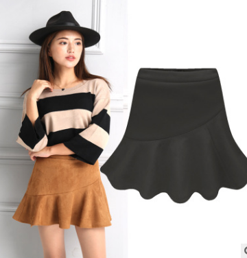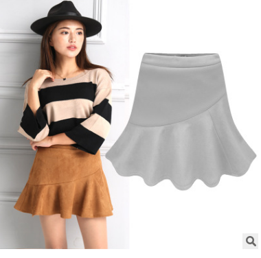 2017秋冬季新款女裝高腰鹿皮絨魚尾裙荷葉邊防走光包臀半身短裙女