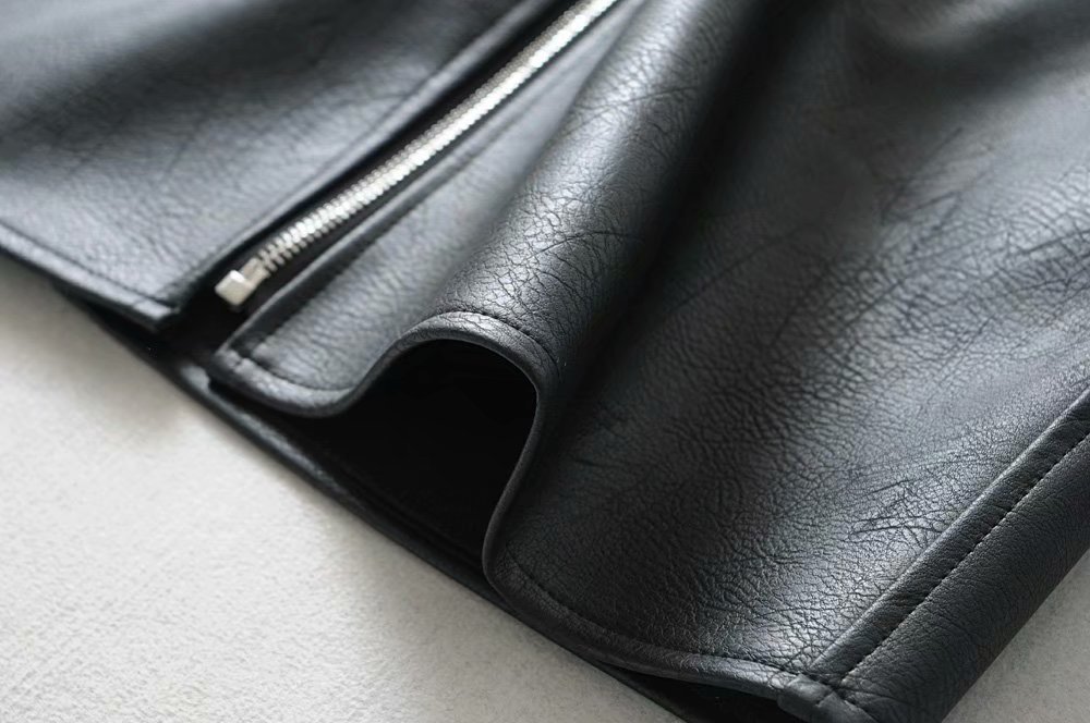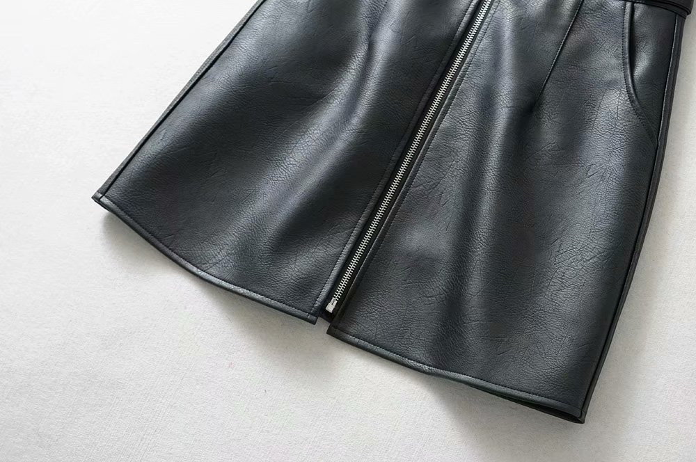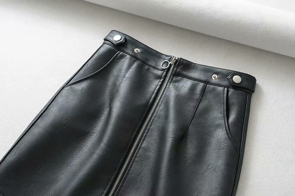2020歐美風(fēng)秋冬女裝新款批發(fā)高腰口袋拉鏈PU皮半身裙