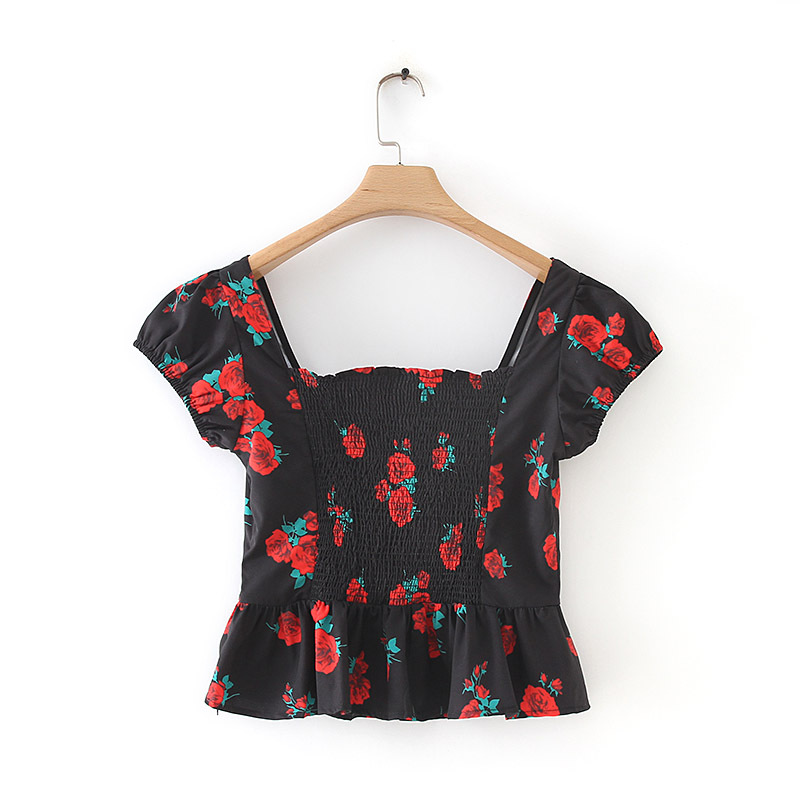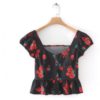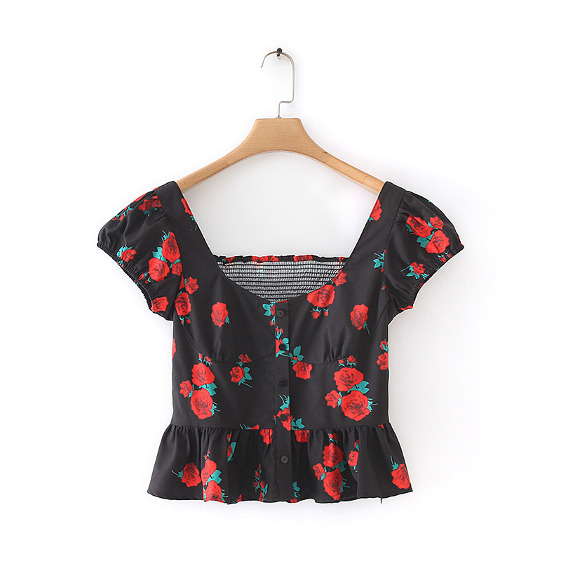 2020歐美風(fēng)春夏女裝新款批發(fā) 玫瑰印花上衣