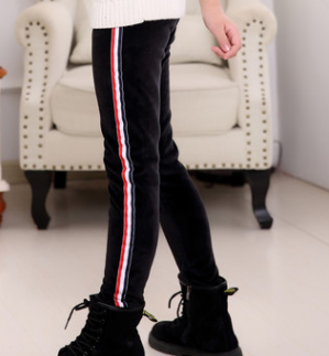 冬季女童打底褲加絨加厚中童兒童打底褲條紋織帶童褲外穿運(yùn)動(dòng)棉褲