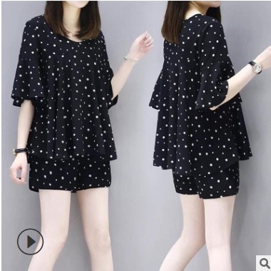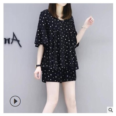2020夏裝新款大碼女裝洋氣套裝胖mm韓版遮肚子時尚短袖短褲兩件套
