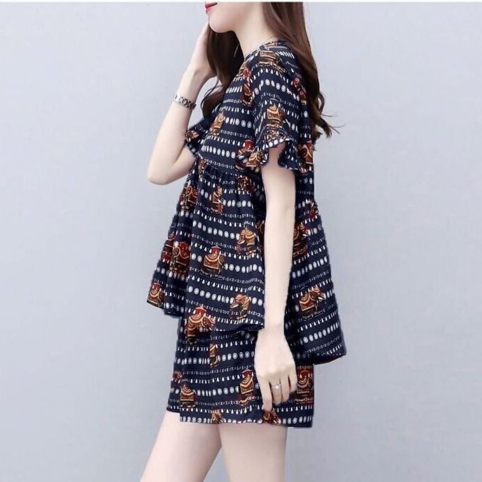2021款女裝夏裝兩件套褲短袖上衣短褲休閑時尚寬松套裝女外貿
