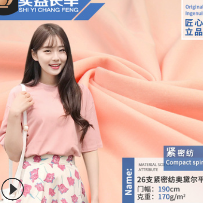 廠家直銷全棉汗布 26s緊密紡平紋布夏男裝T恤面料 全棉針織面料