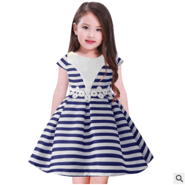 mitun2018新款童裝連衣裙女童時尚條紋春夏季公主蓬蓬裙跨境專供