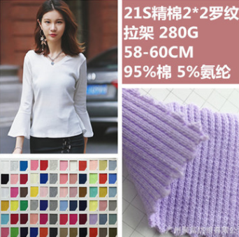 新款21S支純棉2*2羅紋拉架 全棉氨綸2*2羅紋針織面料衛(wèi)衣童裝袖口