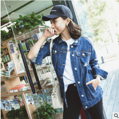 1688阿里巴巴批發網一件代發代理加工秋冬女裝破洞刺繡牛仔長外套