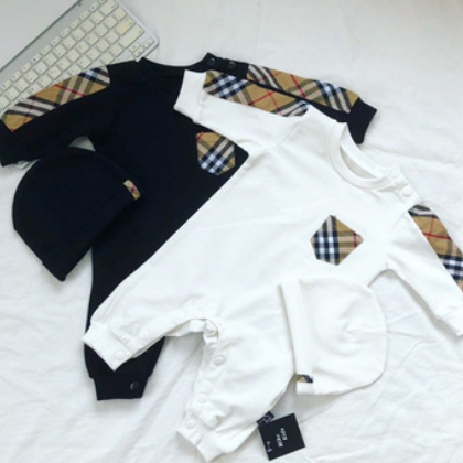 2019秋裝新款男女寶寶格子拼接白色衛衣親子裝上衣嬰幼兒連體哈衣
