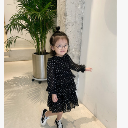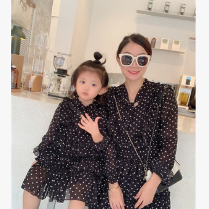 女童親子淑女星星雪紡裙2019春秋季新款母女裝連衣裙