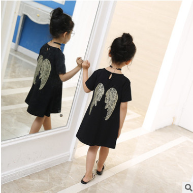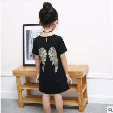 2017夏季新款女童裙子小童翅膀連衣裙長裙兄妹裝夏季t恤歐美外貿(mào)