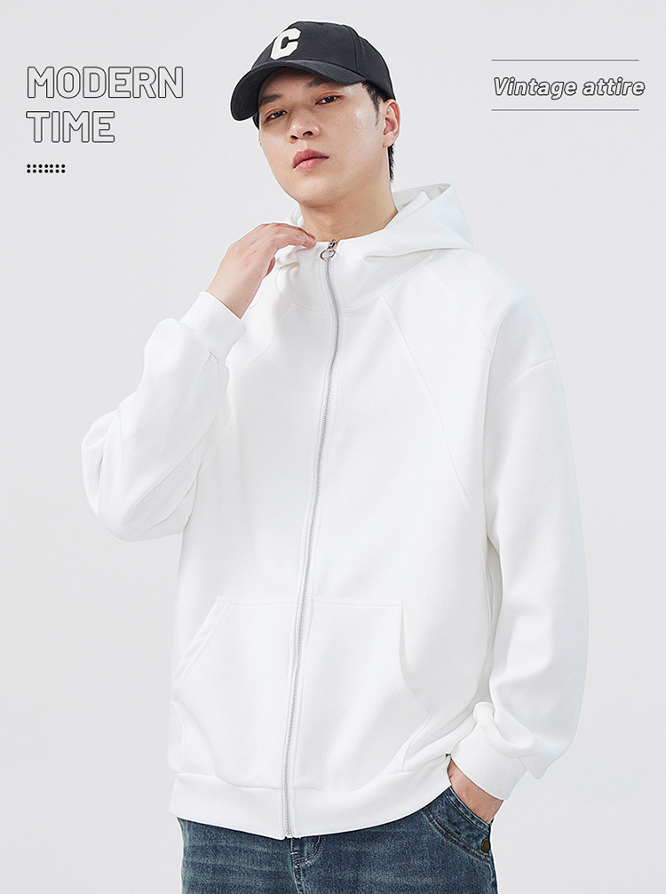 2024秋冬新款簡約時尚百搭拉鏈潮款連帽純色男士衛衣外套