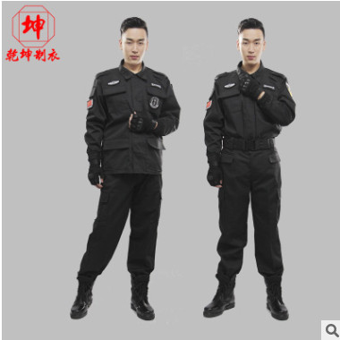 加厚滌棉斜紋防靜電黑色保安地鐵門崗執(zhí)勤作訓工作服廠家直銷