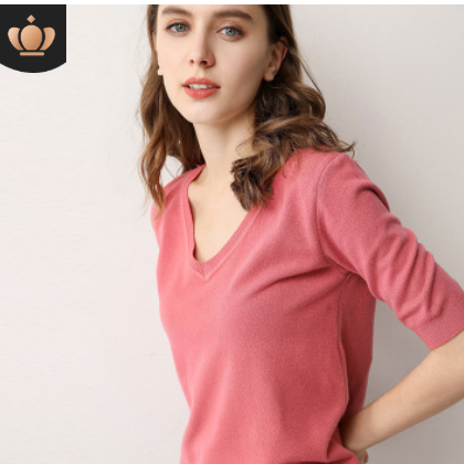 春季短袖女秋冬洋氣毛衣針織衫v領半截袖潮百搭韓版寬松打底衫T恤