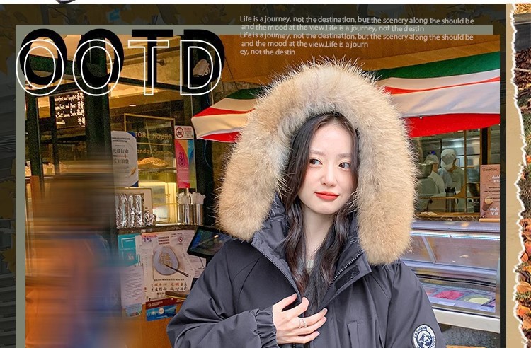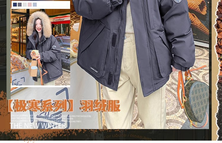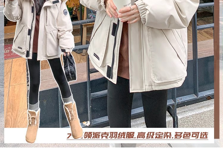 蘭潘可羽絨服女毛領派克服工裝2024冬季短款小個子加厚外套韓藏青