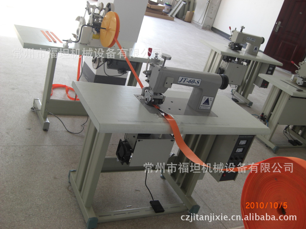 該機用于無紡布袋口、袋邊的縫合、壓花與裁邊;提手的成型制作。