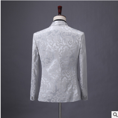 新款男士演出服青果領印花禮服套裝舞臺主持人歌手司儀大合唱服裝
