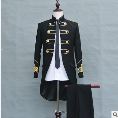 演出服男2019新款燕尾服送領結舞臺青年主持禮服歐洲宮廷迎賓男裝