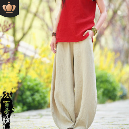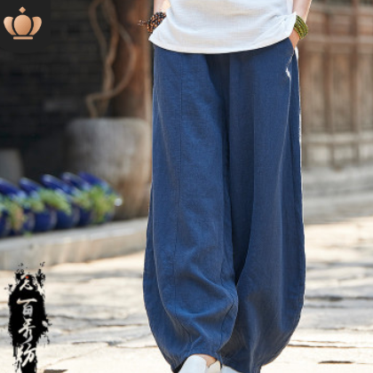 20春夏棉麻女裝新品念百秀紡原創國風復古苧麻水洗百搭燈籠褲長褲