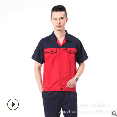 定做夏季工作服短袖款舒適勞保服車間汽修電焊工裝服套裝加工批發(fā)