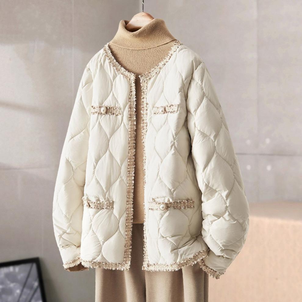 大碼女裝2023秋冬新款輕薄棉服女小個(gè)子百搭圓領(lǐng)小香風(fēng)棉衣外套