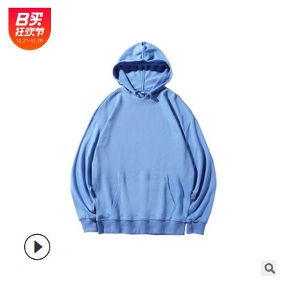 2020秋冬青年純色無領連帽衛衣定制休閑套頭落肩外套來圖LOGO印制