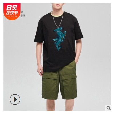 2020新款青年夏季純棉T恤個性圖案印花短袖寬松白色上衣休閑T恤衫