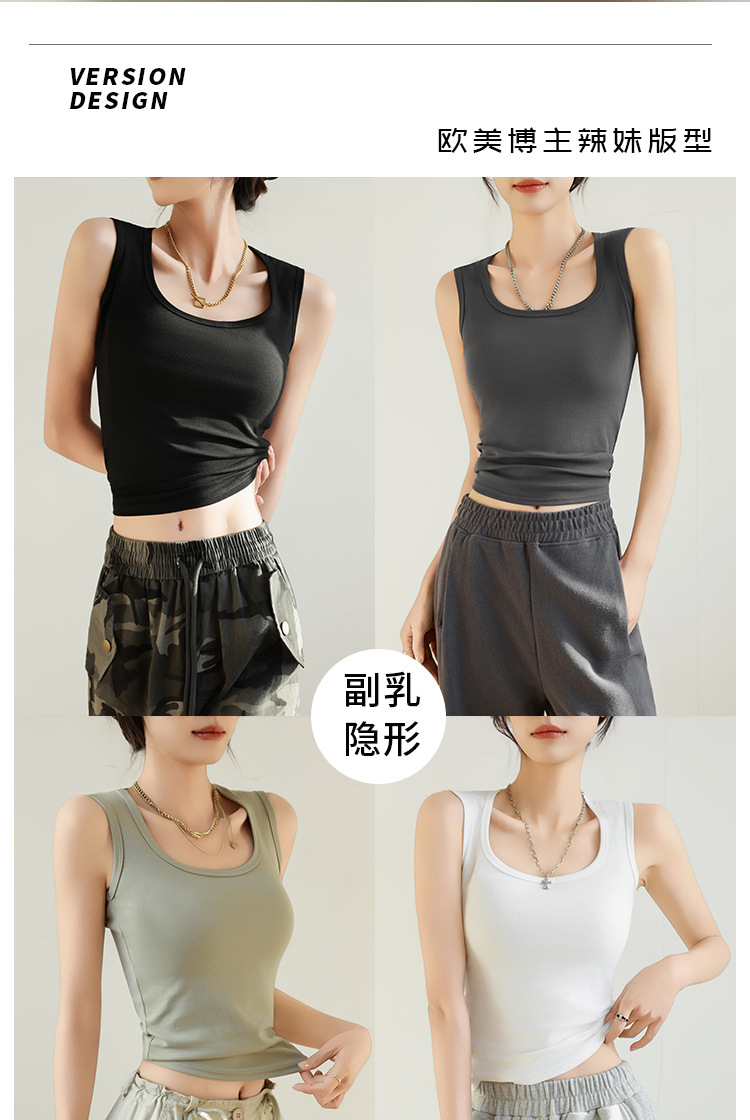 H349純棉吊帶背心女夏季新款工字內搭寬肩遮副乳修身白色打底上衣