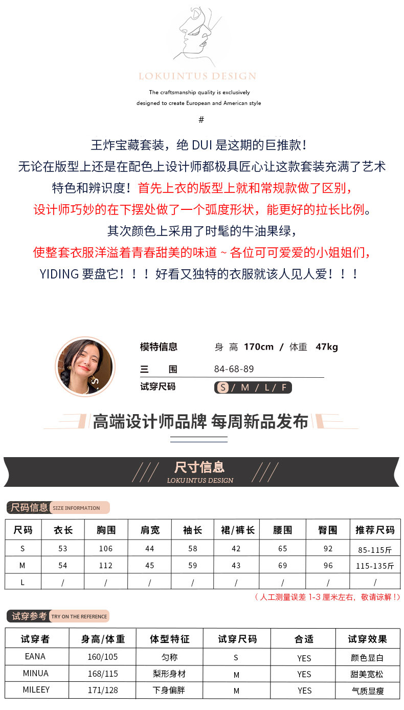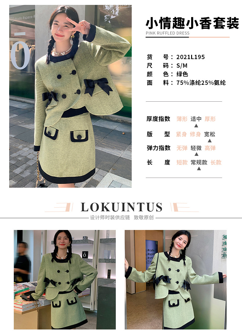 DL195小香風蝴蝶結兩件套長袖寬松上衣外套A字短裙套裝秋季設計感