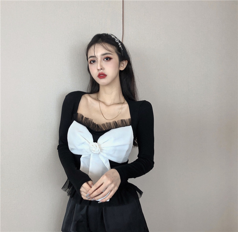 首頁(yè) > 供應(yīng)產(chǎn)品 > 蝴蝶結(jié)網(wǎng)紗拼接長(zhǎng)袖襯衫春季新款氣質(zhì)蕾絲邊設(shè)計(jì)感修身短款上衣女