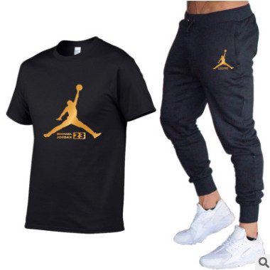 跨境服裝男式短袖套裝時尚棉質t恤套裝23印花休閑t恤運動套裝