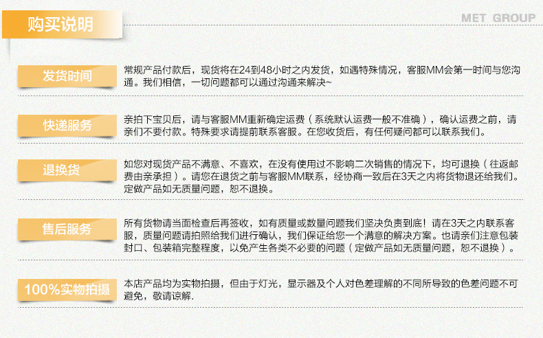 我們鄭重承諾,所有現貨的寶貝,付款后72小時內發貨,預售款按預售日期發貨。有特殊需求請告知客服。