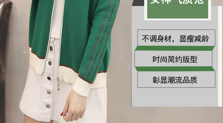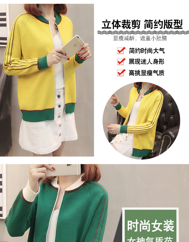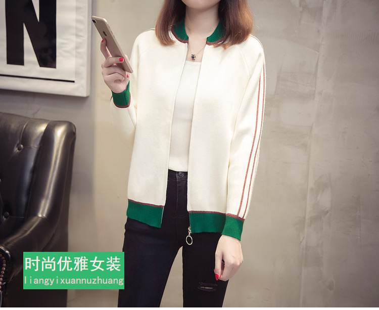 2018秋冬新款慵懶風針織衫女裝開衫韓版寬松條紋棒球服毛衣女外套