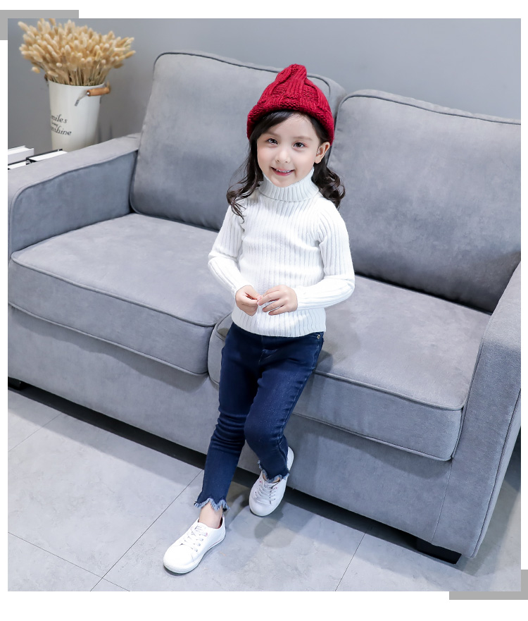 女童高領毛衣 冬裝2018新款兒童百搭純色加厚針織衫 女孩打底衫