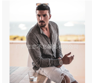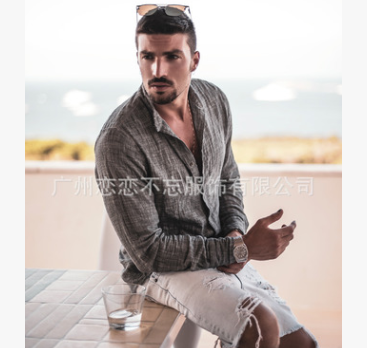 2019外貿歐美速賣通ebay新款爆款棉麻長袖男士休閑襯衫