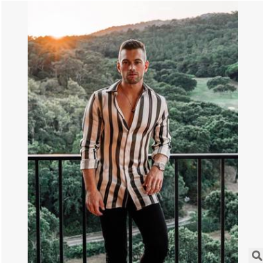 2019外貿歐美新款條紋長袖紐扣翻領男士休閑襯衫6012