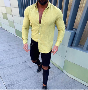 2019春夏外貿歐美速賣通ebay新款純色長袖紐扣亞麻男士休閑襯衫