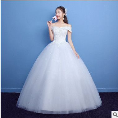 2020新款韓版一字肩婚紗修身大碼新娘婚紗禮服齊地蓬蓬裙
