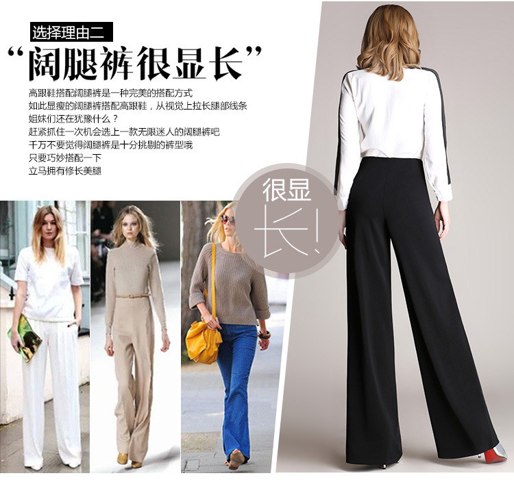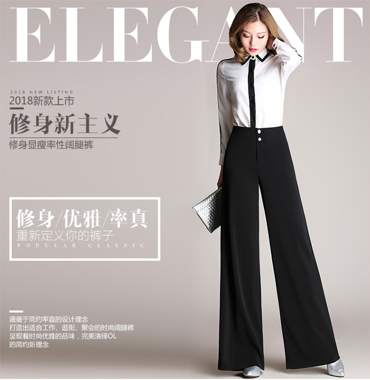 2020春秋裝新款女士休閑垂感闊腿褲女長褲寬腿褲高腰大腳裙褲