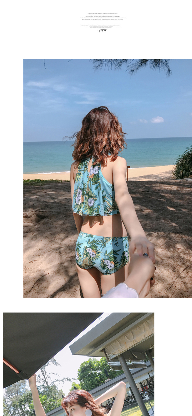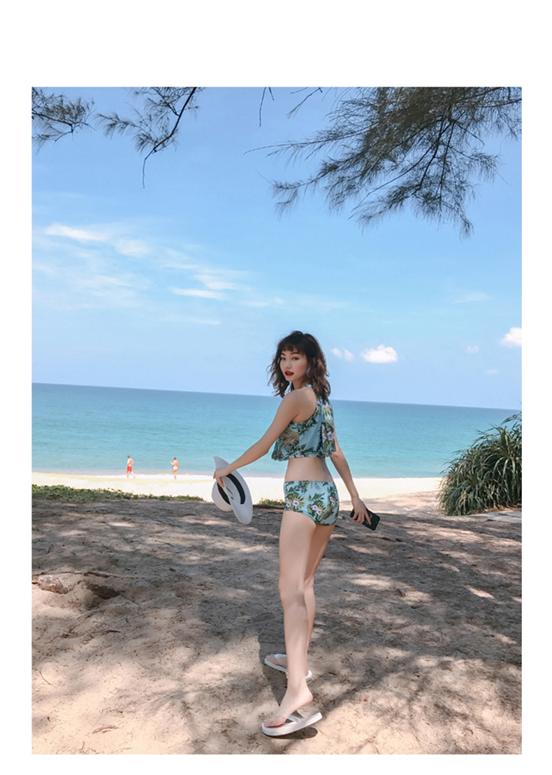 新款夏季時(shí)尚度假聚攏鋼托三角分體泳衣三件套