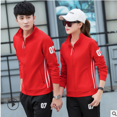 情侶運動套裝休閑套裝 男式大碼男裝韓版女運動服大碼一件代發