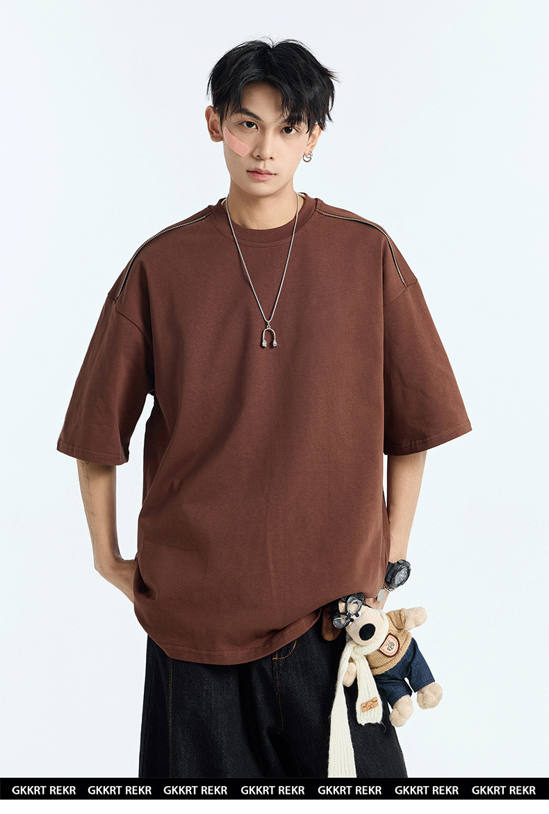 320克重磅純棉T恤男2025春夏新款拉鏈工藝設計感短袖休閑寬松百搭