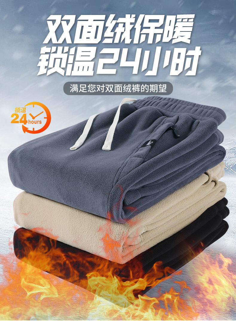 雙面搖粒絨衛褲秋冬季保暖御寒男士休閑褲加絨加厚外穿束腳運動褲