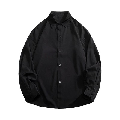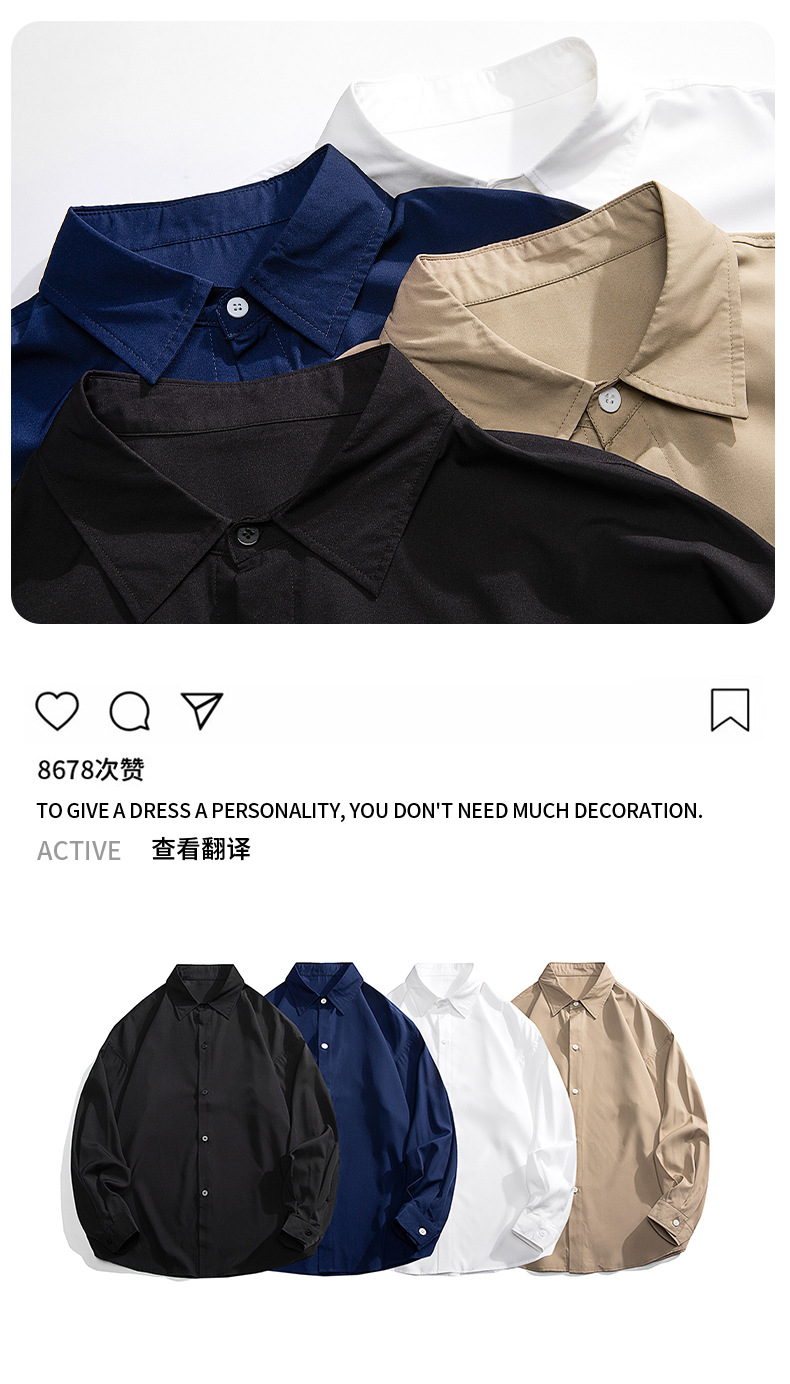 春季長袖襯衫男2024韓版寬松帥氣休閑潮流外穿襯衣純色簡約外套男