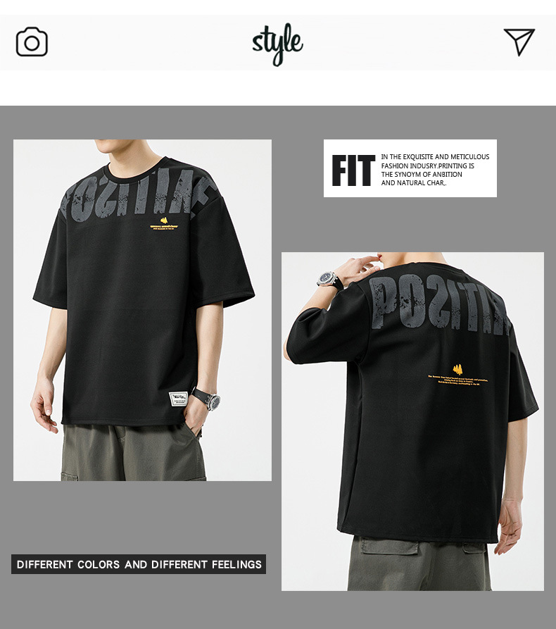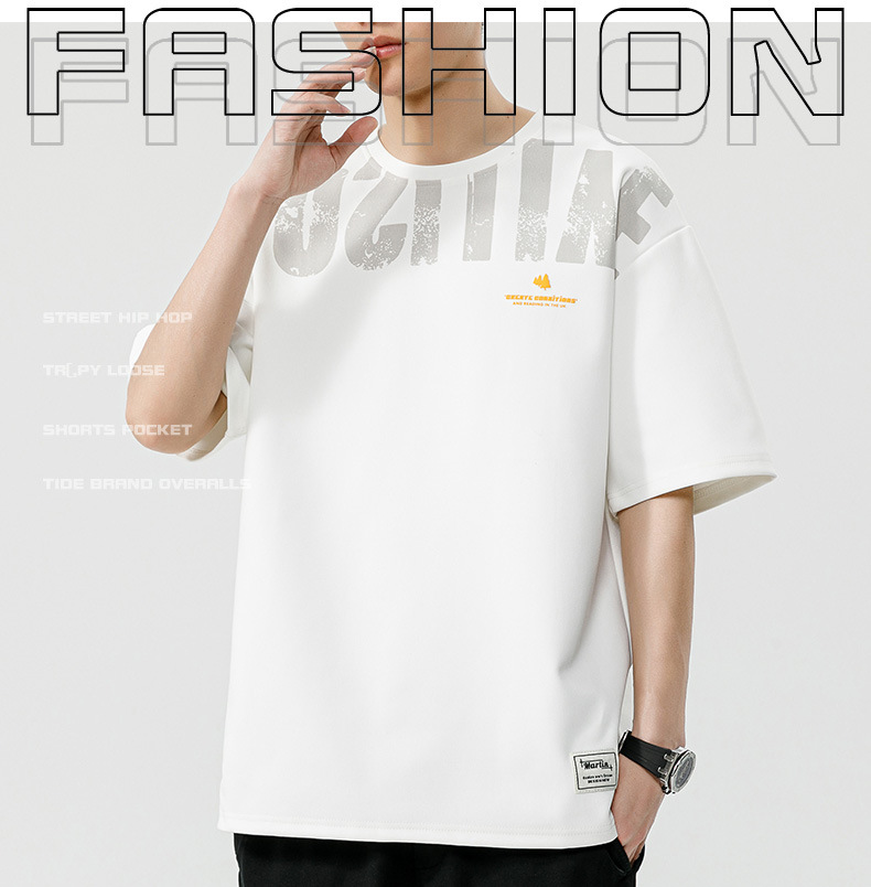 大碼短袖T恤男2024夏季美式潮牌印花打底衫寬松休閑百搭加肥加大