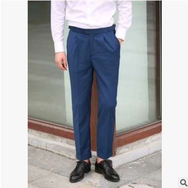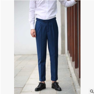 新款 黑色復(fù)古高腰巴黎扣 修身西褲 收褶翻邊款 男士褲 可定制