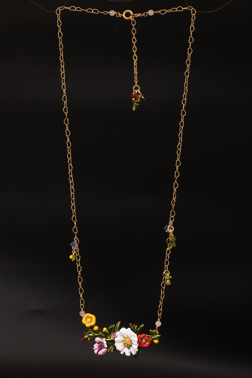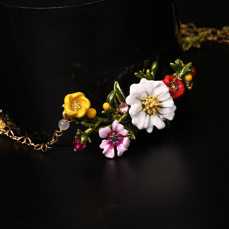 風格花草系列 琺瑯彩釉百花爭艷雛菊紅花項鏈短鏈支持混批